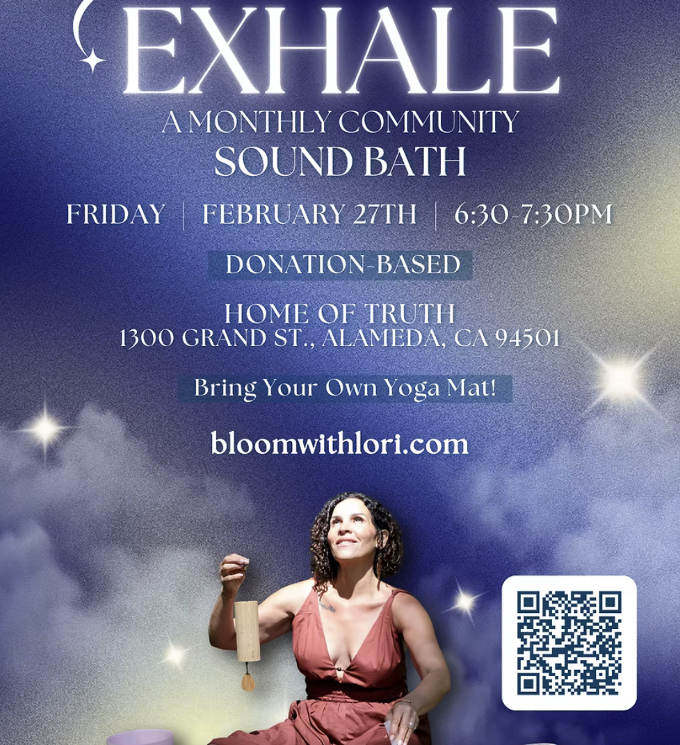 Exhale is a monthly community sound bath hosted by Lori of Bloom with Lori, created as a gentle space to rest your nervous system, release stress, and reconnect with your body through sound and stillness.